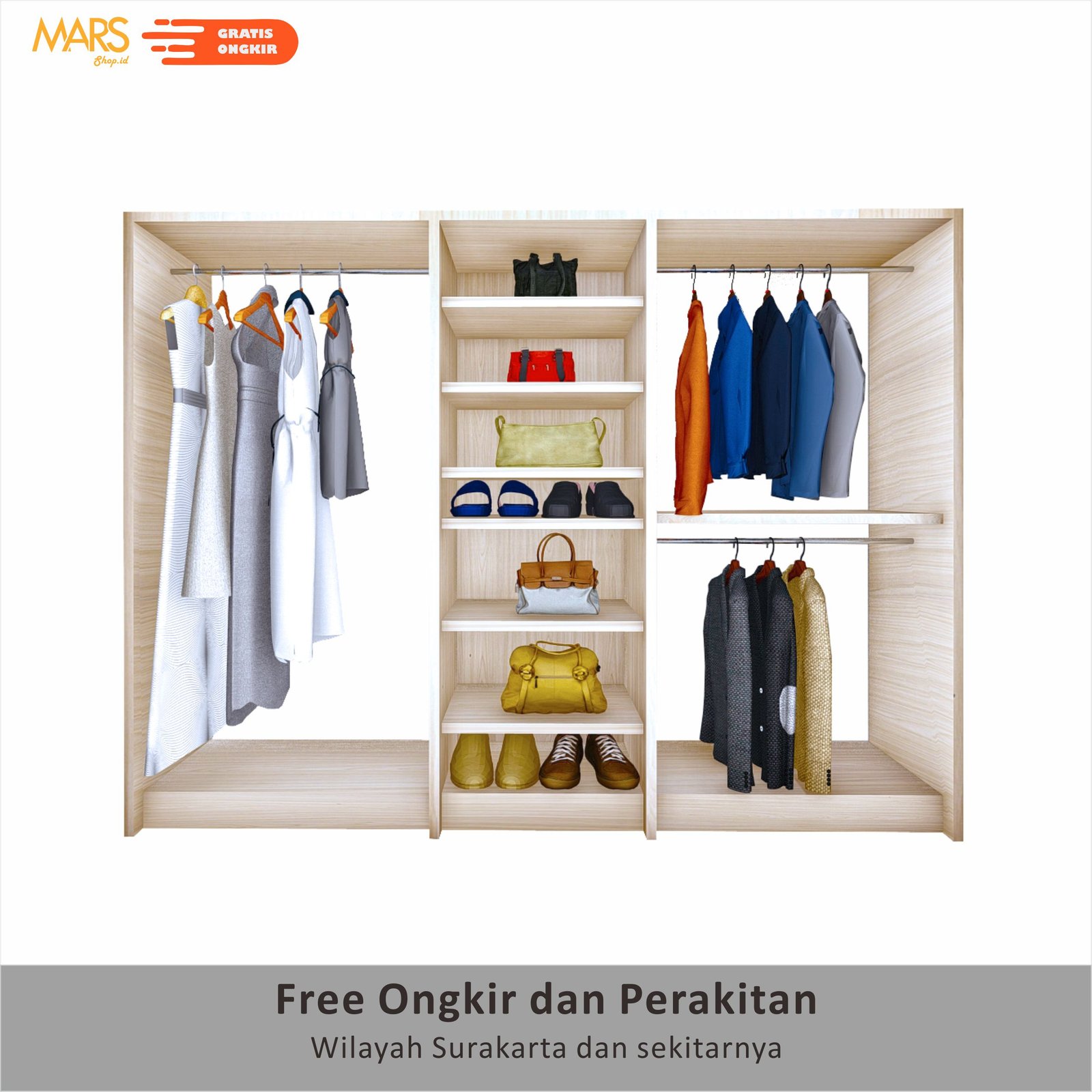 Mars mebuat produk yang mengutamakan kualitas , material plywood menjadi pilihan kami untuk membuat Wardrobe ini, karena tidak mudah berjamur dan tidak mudah lapuk